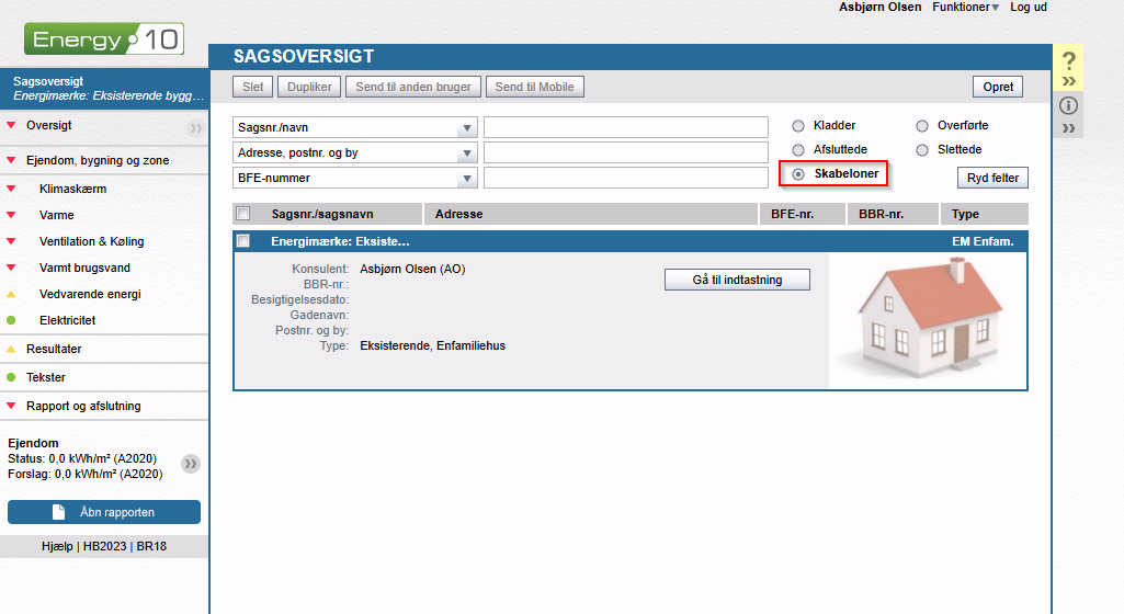 Fordelen er, at du nu kan oprette en ny sag hvor du anvender disse automatisk udfyldte informationer, såsom sagstype, forud indfyldte tekster, bygningsdele eller lign. der kan standardiseres i virksomheden.