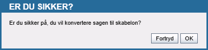 Du får derefter vist en advarsel, for om du er sikker på, at du vil konvertere din kladdesag til en skabelonsag.
