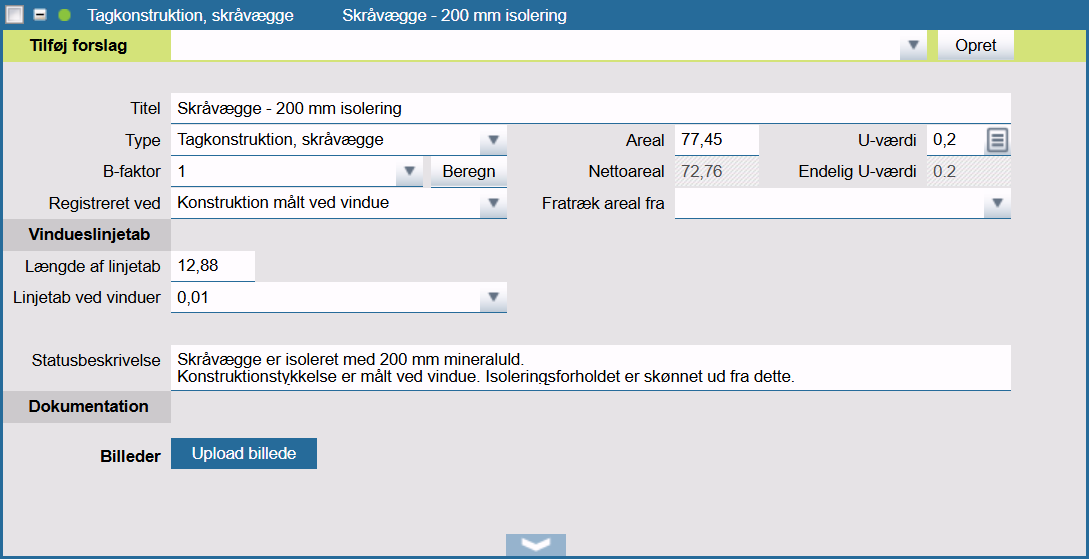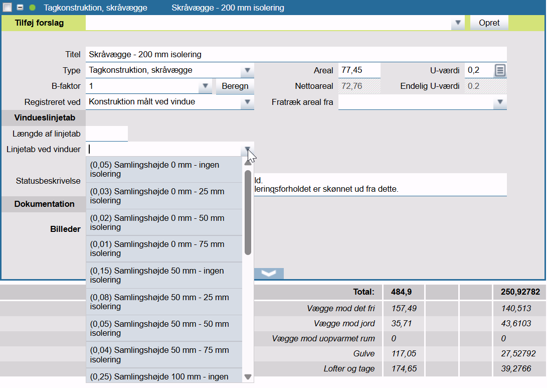 Indtastning af linjetab for ovenlysvinduer adskiller sig en smule fra linjetab omkring almindelige vinduer og døre.