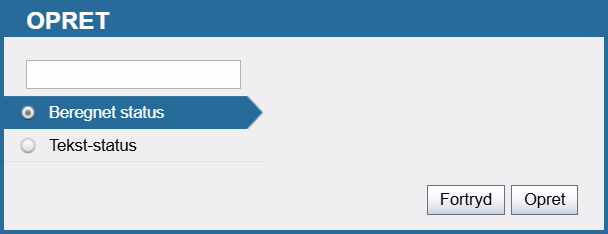 Herved får du et popup-vindue frem på skærmen, med forespørgsel for, om du vil oprette en Beregnet status eller en Tekst-status.