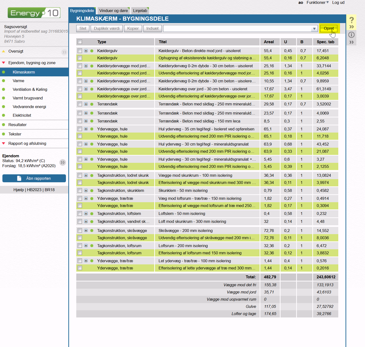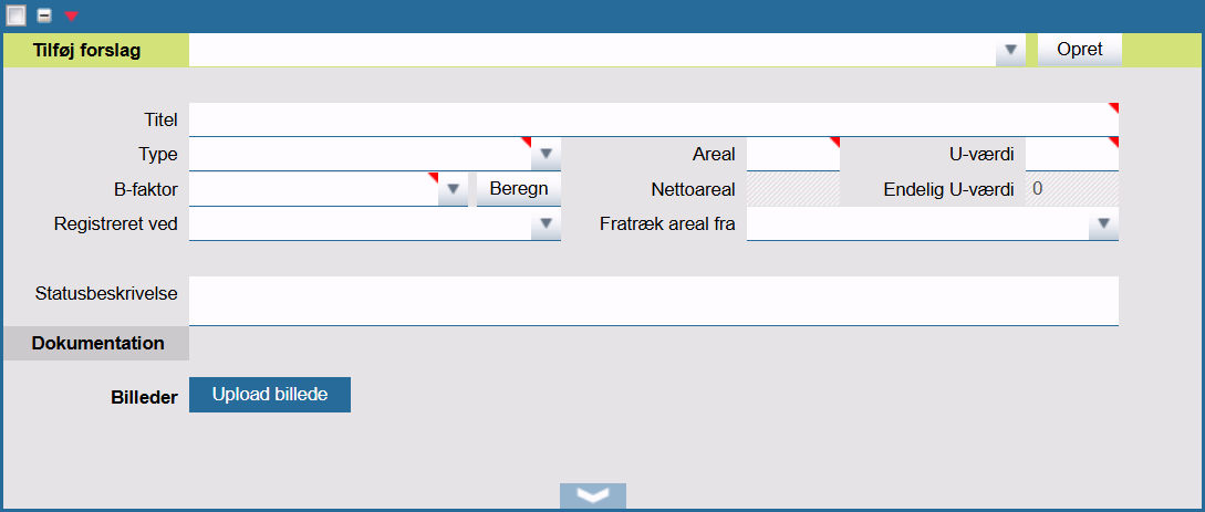 Der er nu op til dig at indtaste al relevant data for bygningsdelen.