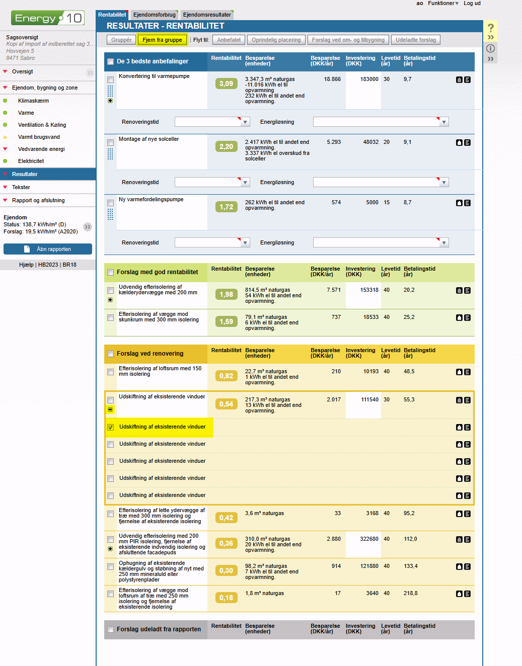 Du åbner blot grupperingen, for så at vinge det forslag af, som du vil fjerne. Dernæst klikker du knappen "Fjern fra gruppe".