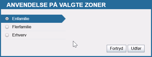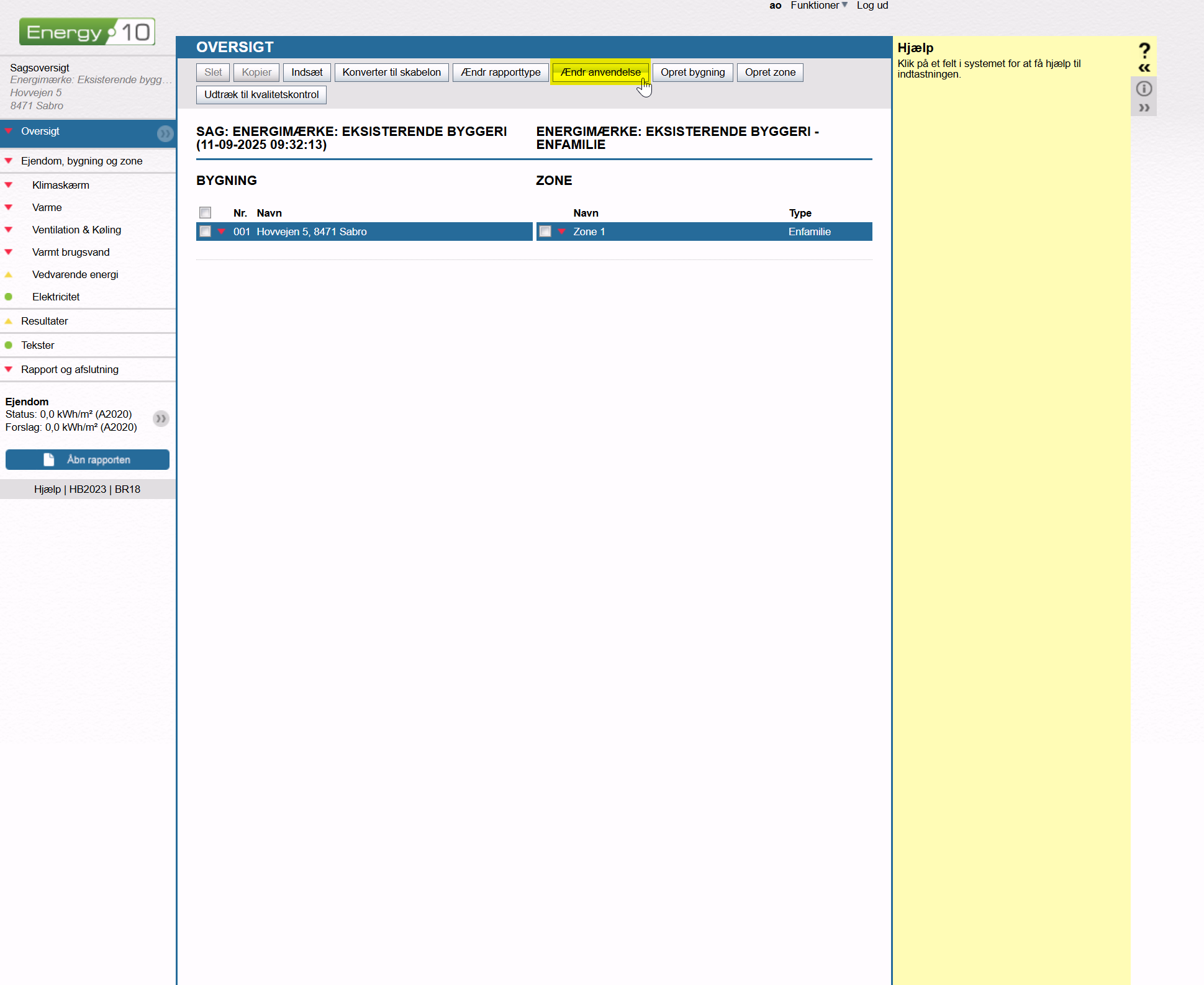 Du markerer med flueben blot din bygning eller zone, hvorefter du klikker på knappen Ændr anvendelse.