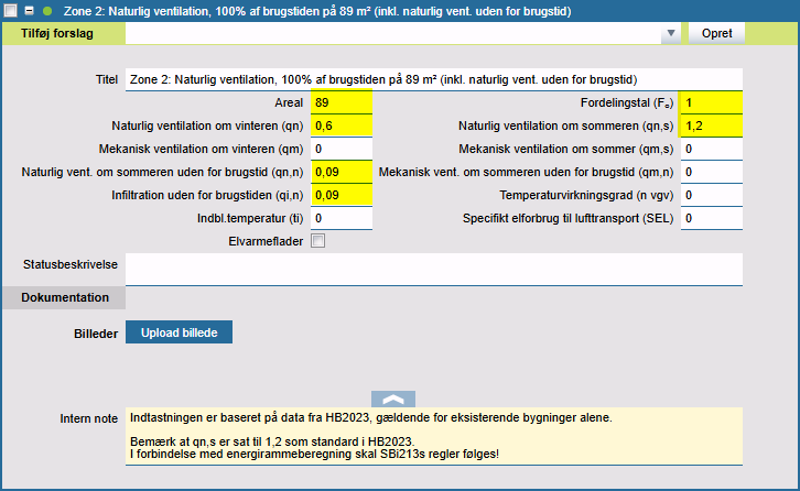 Samtidigt sikrer vi os, at der i felterne "...uden for brugstid" indregnes naturlig ventilation/infiltration på samme areal.