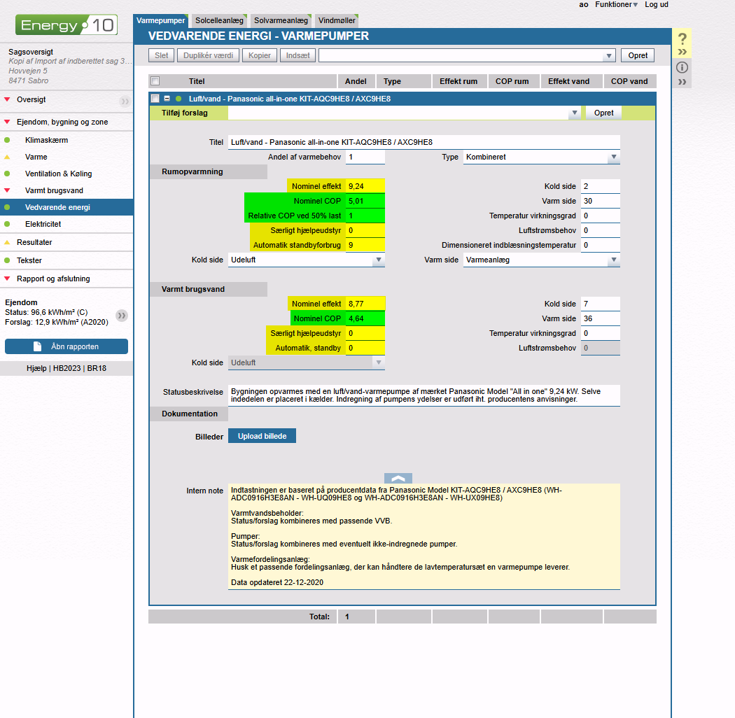 Bemærk, at dette kun gælder for luft/vand og væske/vand varmepumper. Luft/luft varmepumper skal arealfordeles og kan normalt aldrig opnå en samlet andel større end 1 i én og samme bygning.